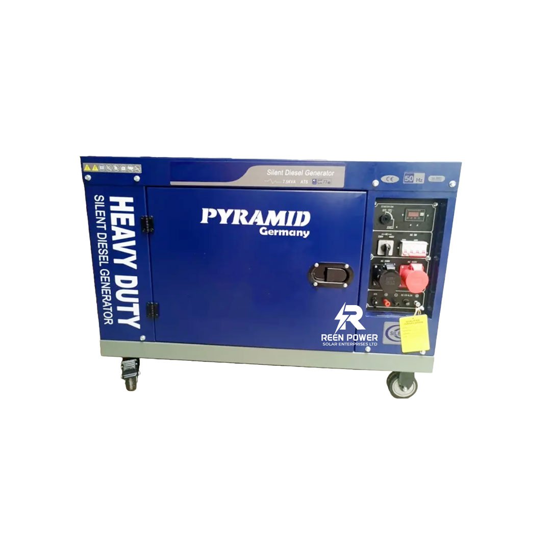 The 10.5kVA 1-Phase Pyramid Silent Diesel Generator with ATS is built to provide reliable backup power for homes, offices, and small-scale commercial setups. Designed with German technology, it combines durability, efficiency, and quiet operation to ensure continuous and dependable electricity supply.
