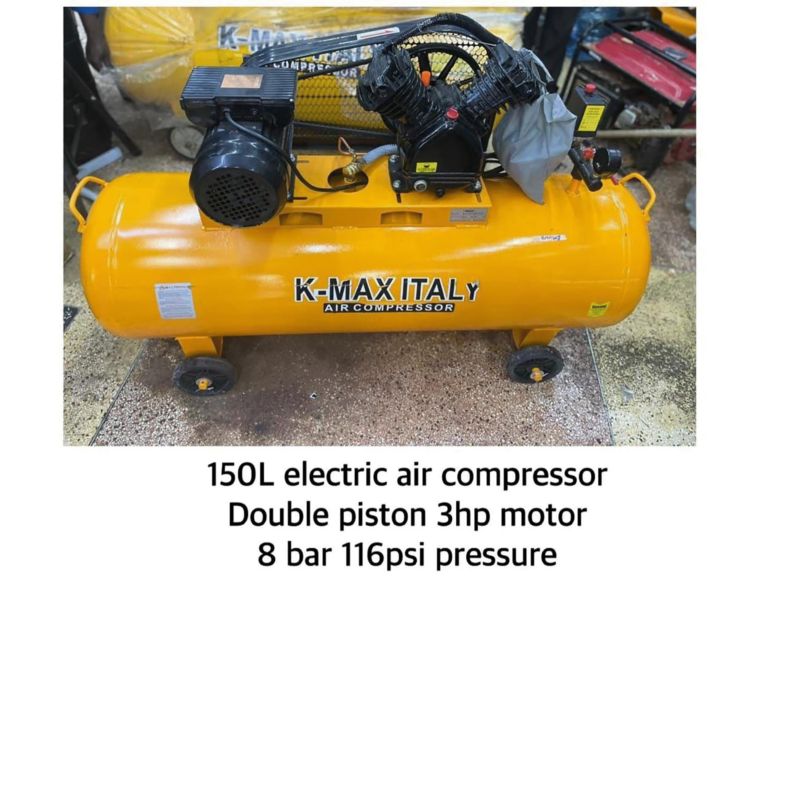 150L Kmax Electric Air Compressor – Double Piston 3HP Motor – 8Bar 116PSI | Industrial-Grade Air Power
