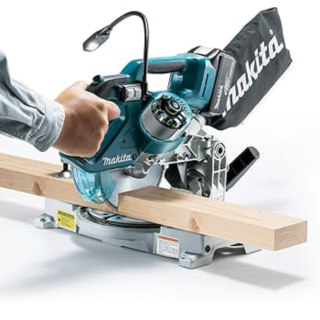 The Makita DLS600Z 18V Brushless Compact Mitre Saw is built for professionals who need accuracy and portability in one compact unit. Powered by Makita’s 18V LXT battery platform, this cordless mitre saw eliminates cables, making it perfect for installation jobs, finishing trim, skirting boards, molding, and on-site furniture pieces.