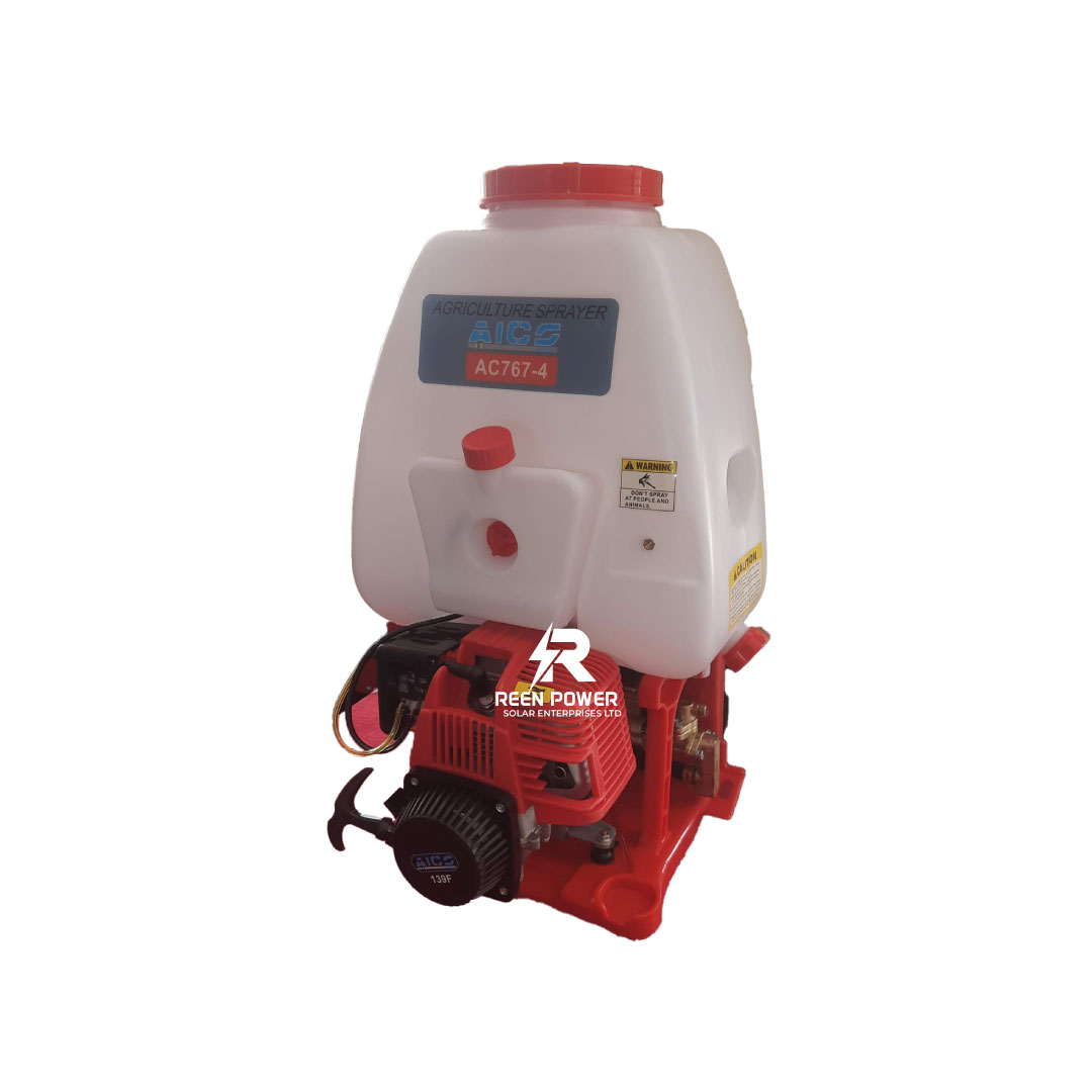 The Aico Japan AC767-4 Petrol Knapsack Sprayer is a reliable, high-performance agricultural sprayer built for professional use in farming, landscaping, and pest control. Powered by a durable 4-stroke petrol engine, it offers smooth operation, low fuel consumption, and reduced noise levels. With its 25-litre tank and high-pressure brass pump, it ensures long-lasting, even spray distribution — ideal for spraying pesticides, fertilizers, and herbicides over large areas.