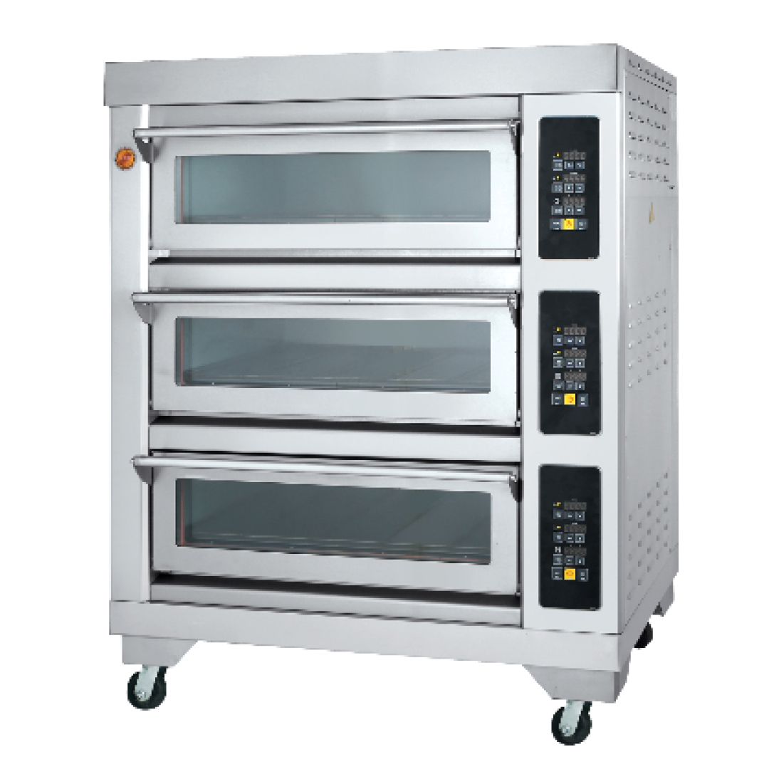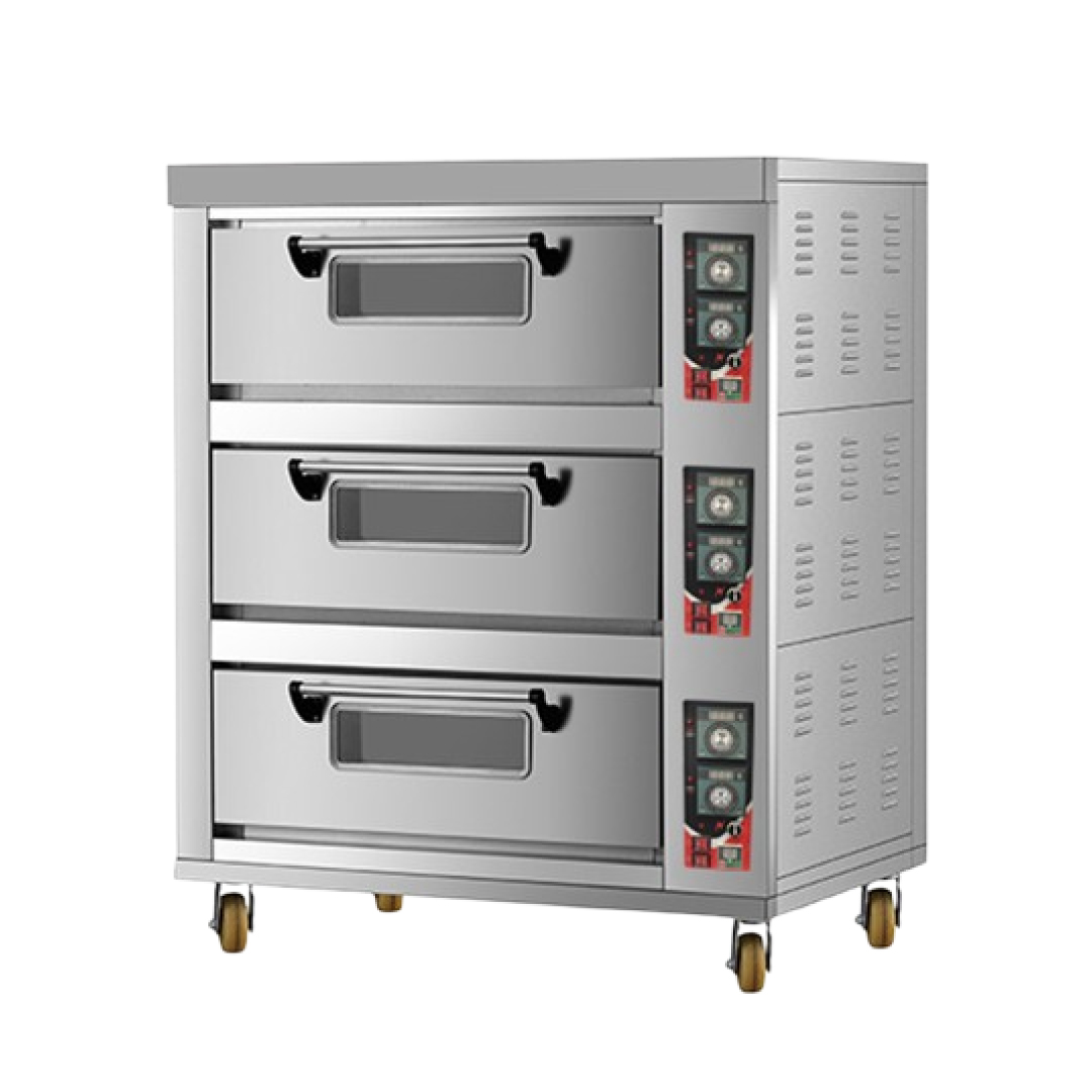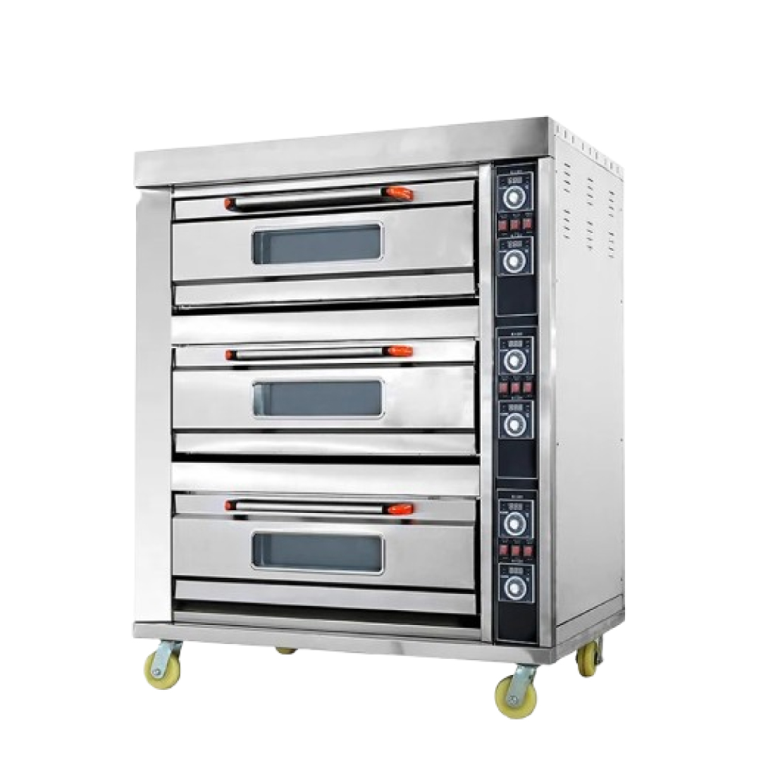 With its 6-tray capacity (2 trays per deck), stainless-steel construction, and premium heating elements, the oven ensures even heat distribution—ideal for baking bread, cakes, pastries, cookies, pizzas, and more. The thick insulation reduces heat loss, while the high-temperature capability supports both slow and fast-baking techniques.