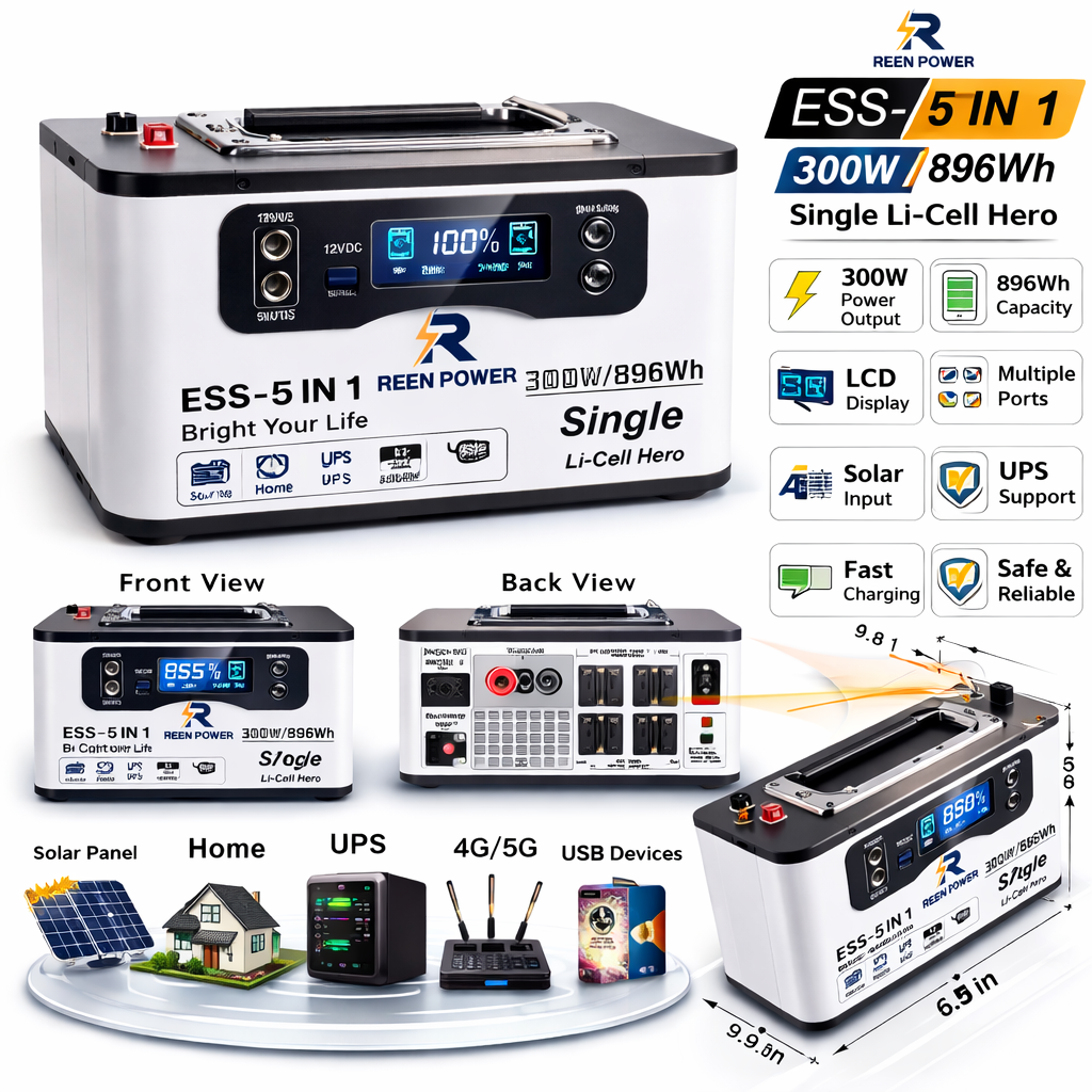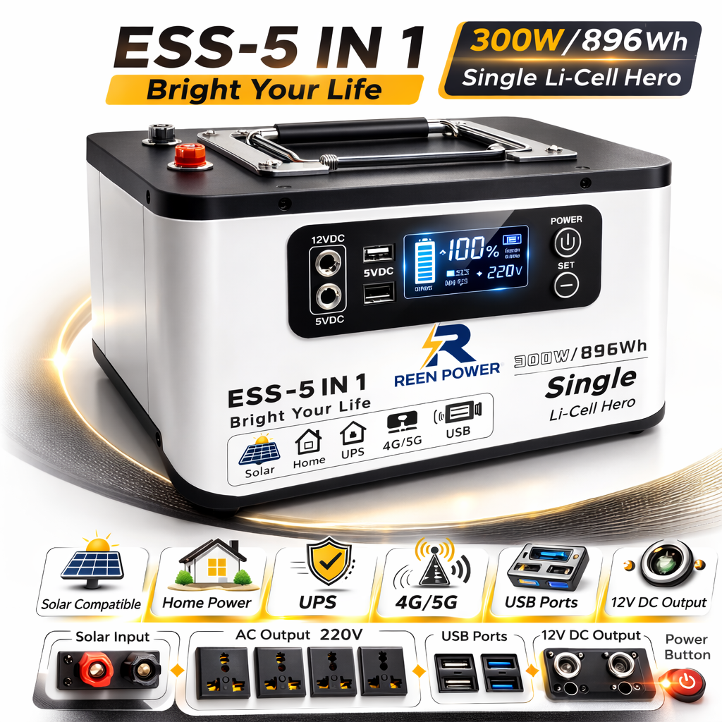 The 300W Reen Power Station is a compact and portable backup power solution designed for home emergencies, outdoor use, and mobile charging — delivering clean, quiet, and reliable energy anytime, anywhere.