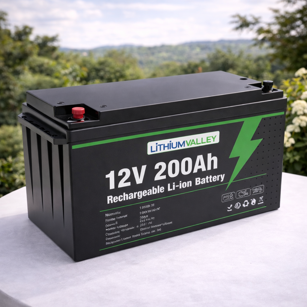 The Lithium Valley LFP200-12 2.56kWh 12.8V 200Ah LiFePO4 Lithium Battery is a high-capacity energy storage solution designed as a direct replacement for traditional lead-acid batteries. Its standard lead-acid shape allows easy installation and seamless upgrades without system modifications.