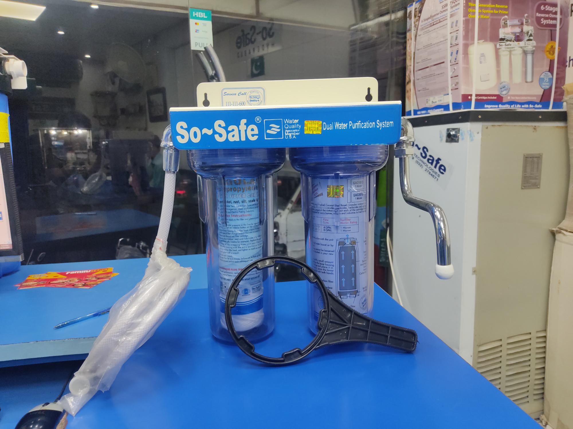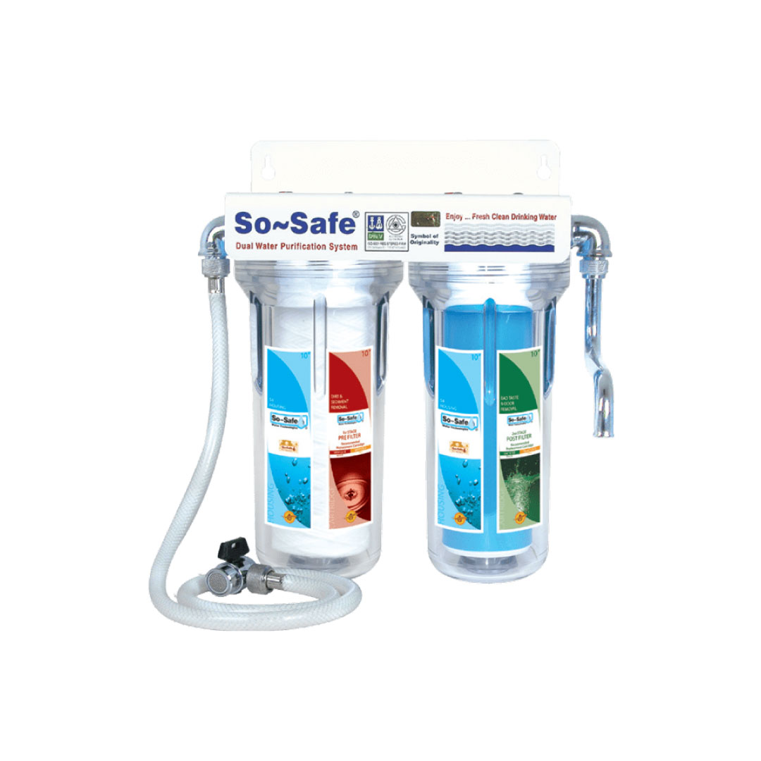 The So Safe Dual Filter with Dallas UV delivers advanced water purification using dual-stage filtration and ultraviolet sterilization. Designed for homes, offices, and institutions, it ensures crystal-clear, bacteria-free, and safe drinking water for everyday use.
